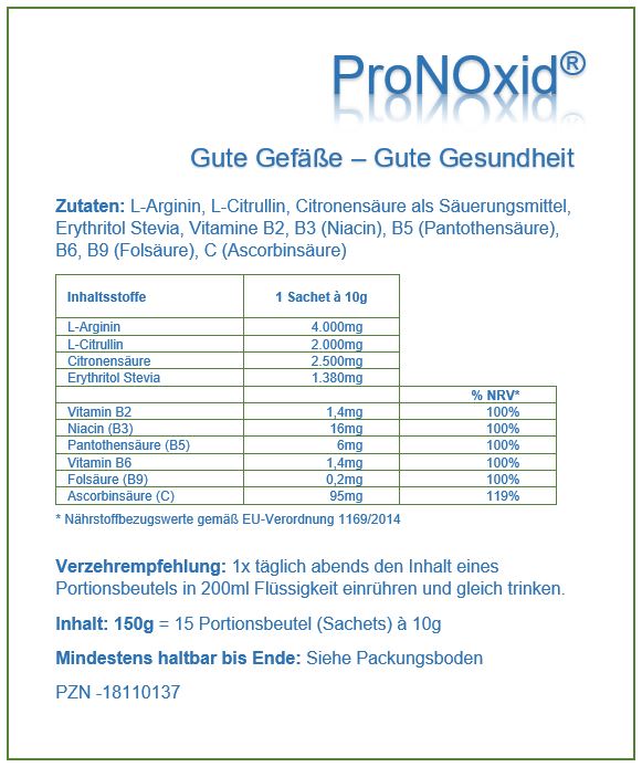 ProNOxid® ist ein Nahrungsergänzungsmittel zur Unterstützung bei leichten Durchblutungsstörungen.